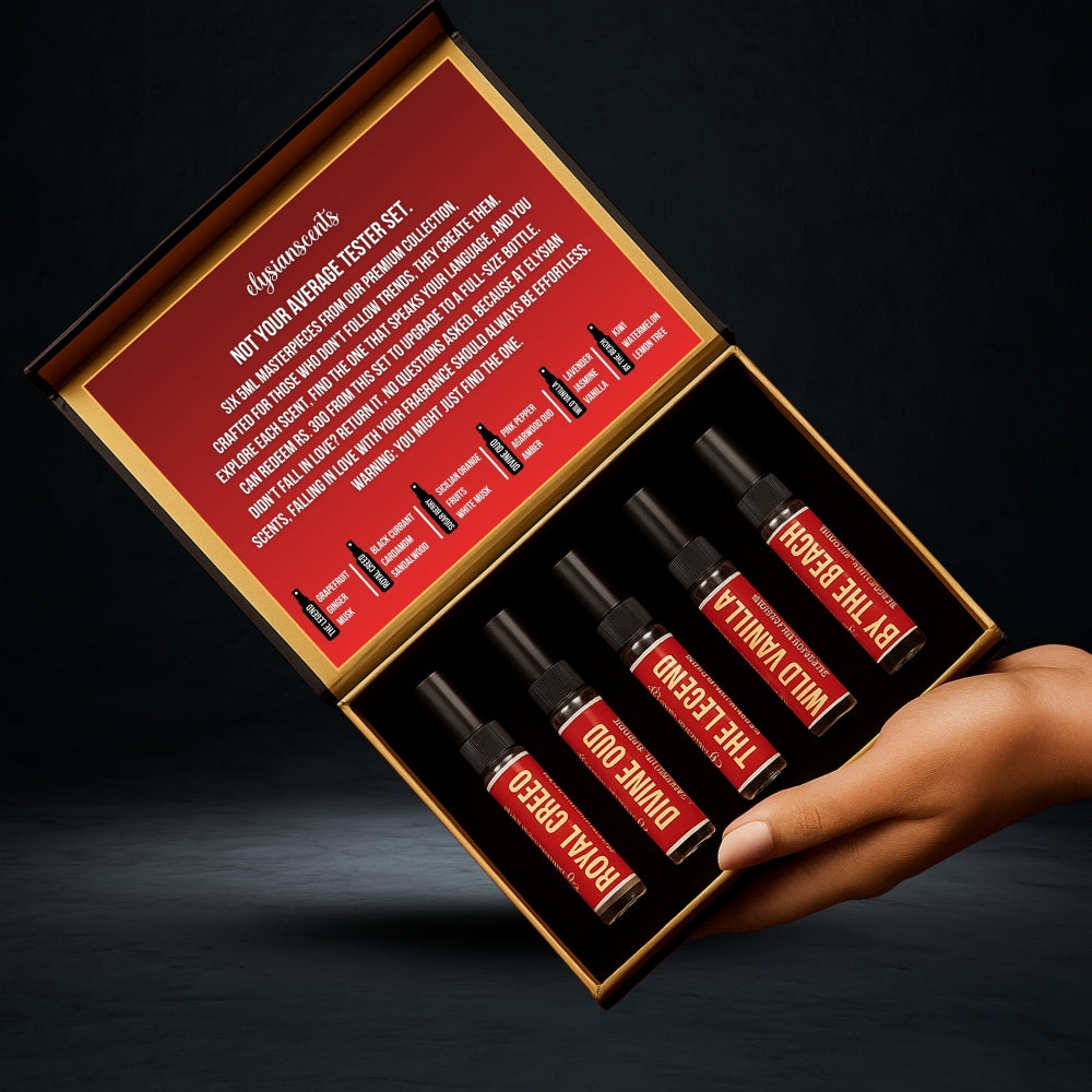 Discover the art of fine fragrance with our Game Changer Set — a premium perfume discovery kit crafted to help you find your signature scent before committing to a full-size bottle.